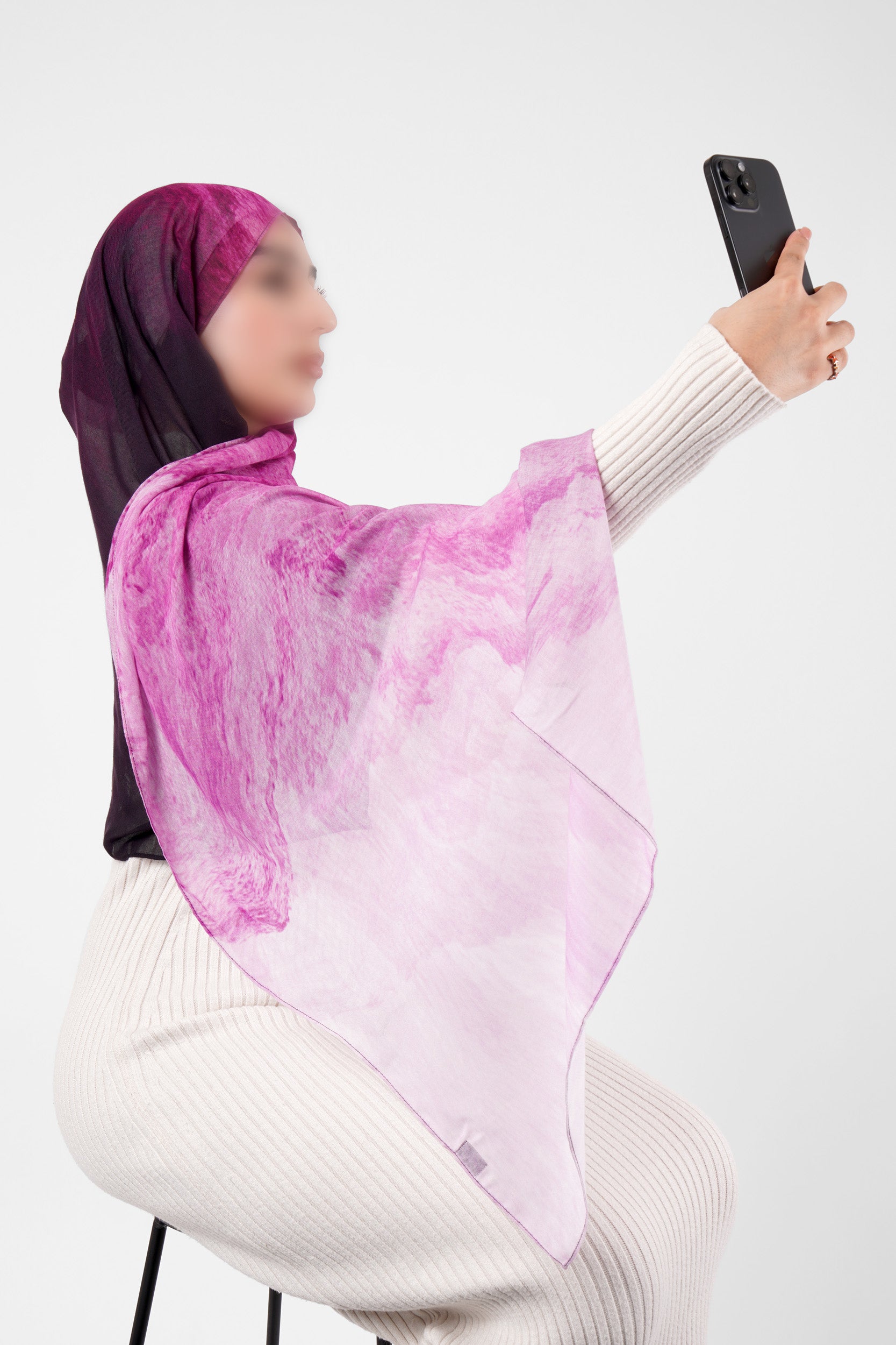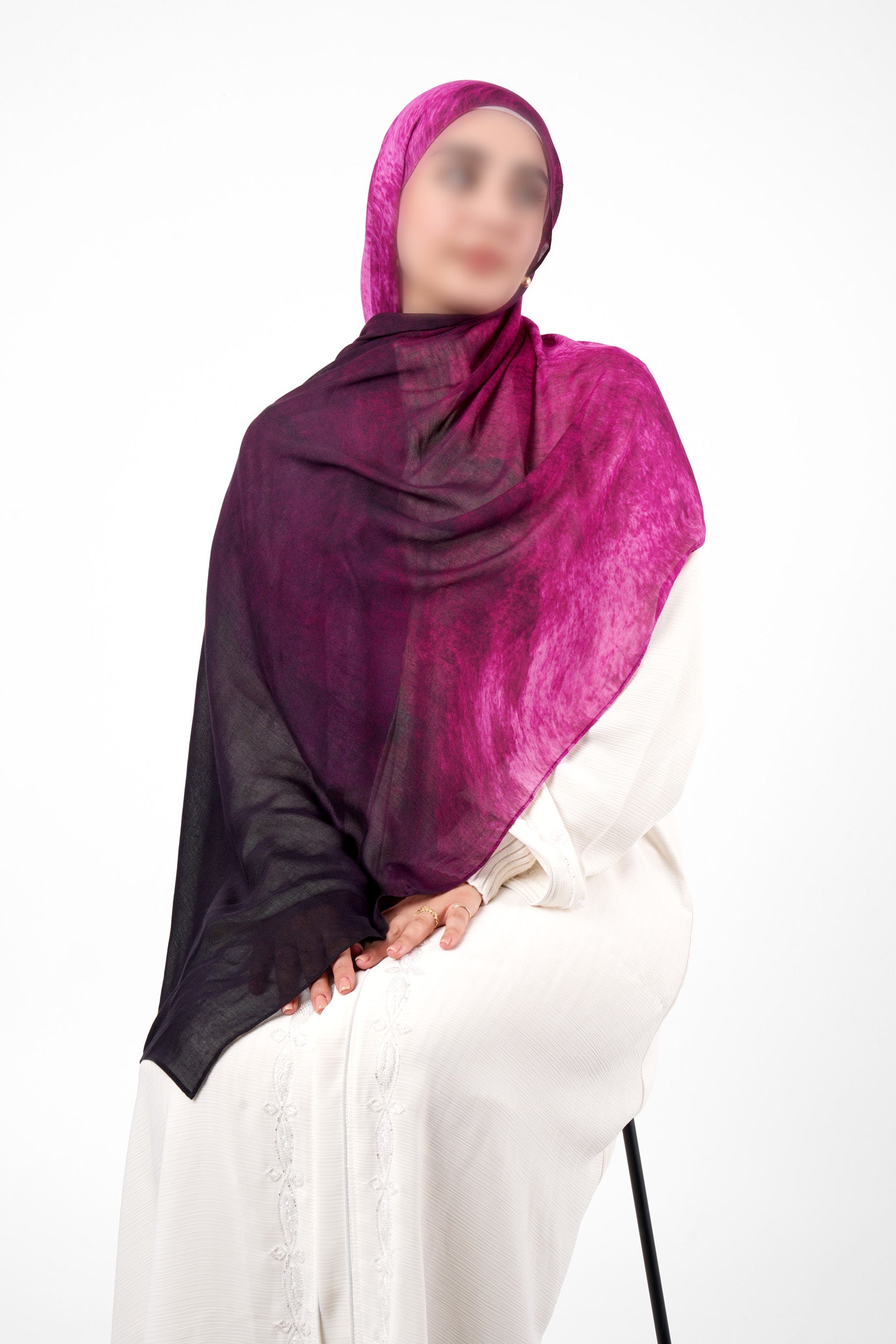 Embrace serenity with Lavender Horizon, a hijab that captures the calm of twilight skies. The gradient flows from delicate lilac to deep lavender, creating a graceful and feminine aesthetic. Ideal for everyday wear or special occasions, it elevates your look with understated elegance.